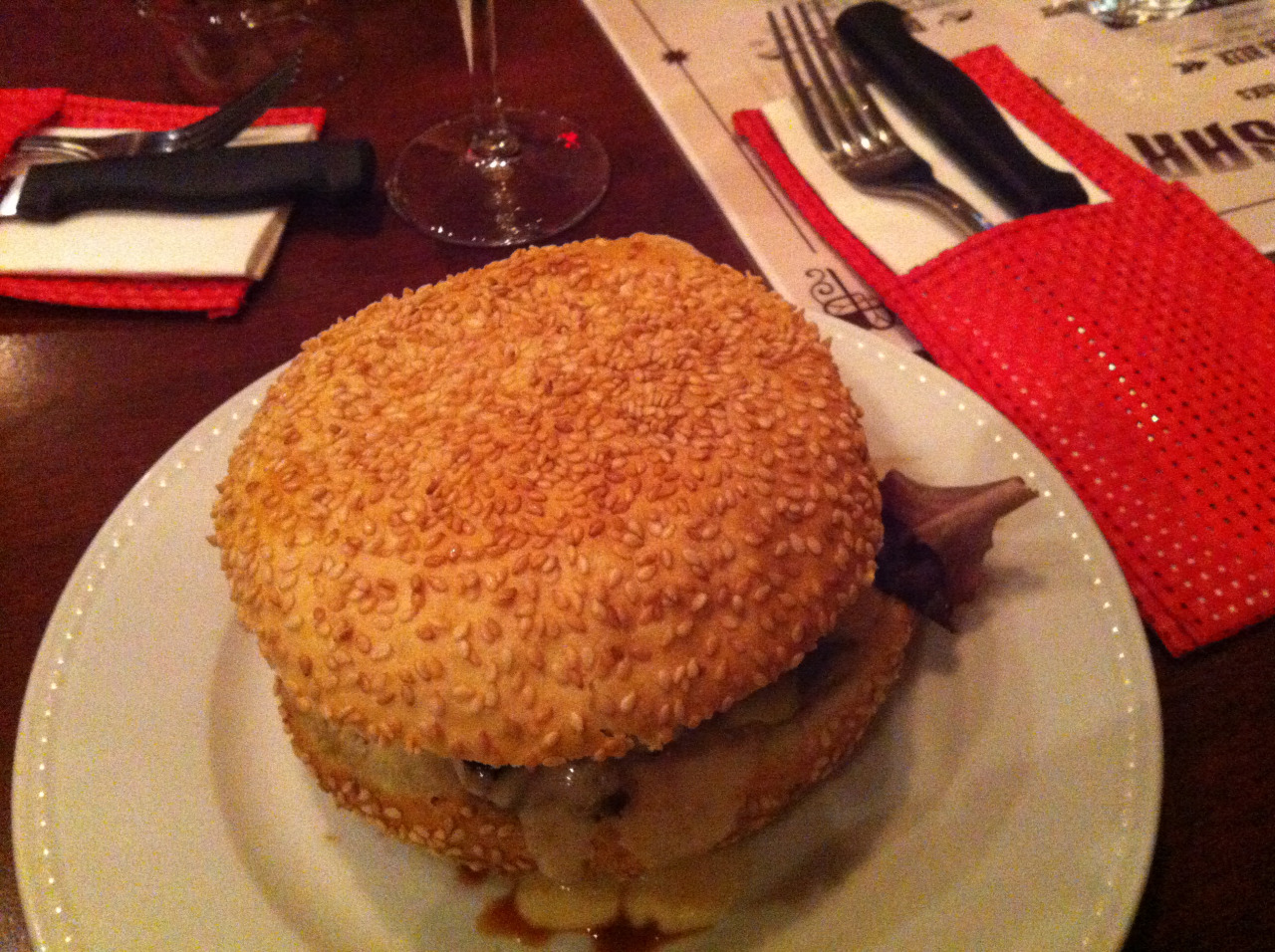 J’ai bu un verre mais j’ai quand même aussi goûté un Burger, le burger Beckham (gorgonzola, mozza…) qui était super bon !