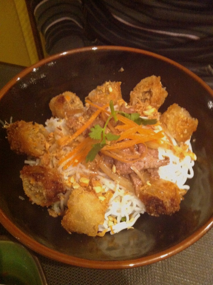 Le bo-bun et les rouleaux de printemps étaient frais et délicieux. J’ai été déçue par le Pho qui manquait de goût.Le dessert était très bon, et m’a donné envie d’y retourner quand même, pour découvrir le petit flan vietnamien au Jasmin 😛