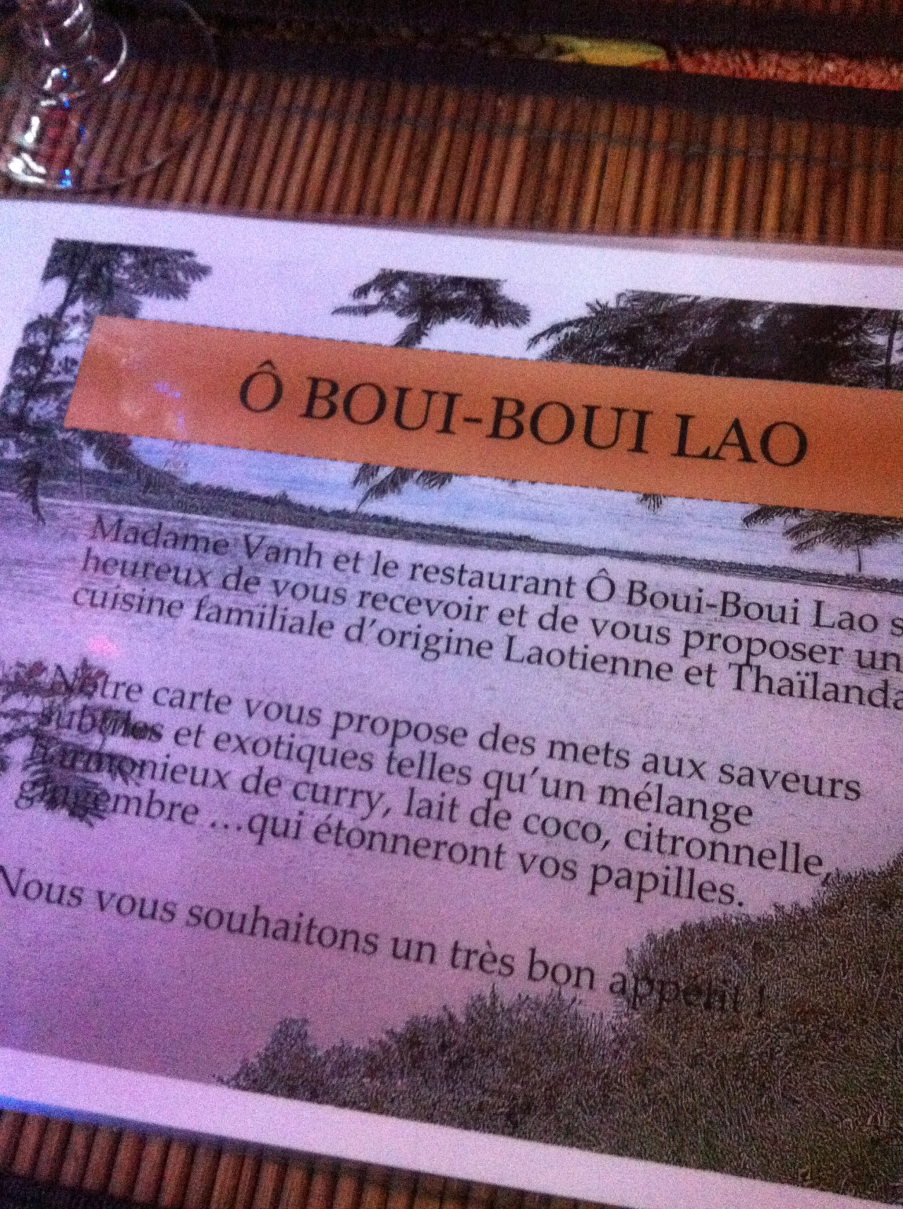 Le restaurant Ô Boui Boui Lao vous fera découvrir les saveurs du Laos dans un endroit intime. Bon, une ambiance presque trop tamisée, car mes photos sont vraiment sombres ^^ Tout était bon, j’ai trouvé le service bien et le choix des plats fait envie, mais j’ai trouvé les saveurs attendues, il manquait peut-être un peu de surprise et d’inattendu