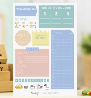 Un bloc de 60 feuilles, avec de quoi noter l’essentiel chaque jour ! clic