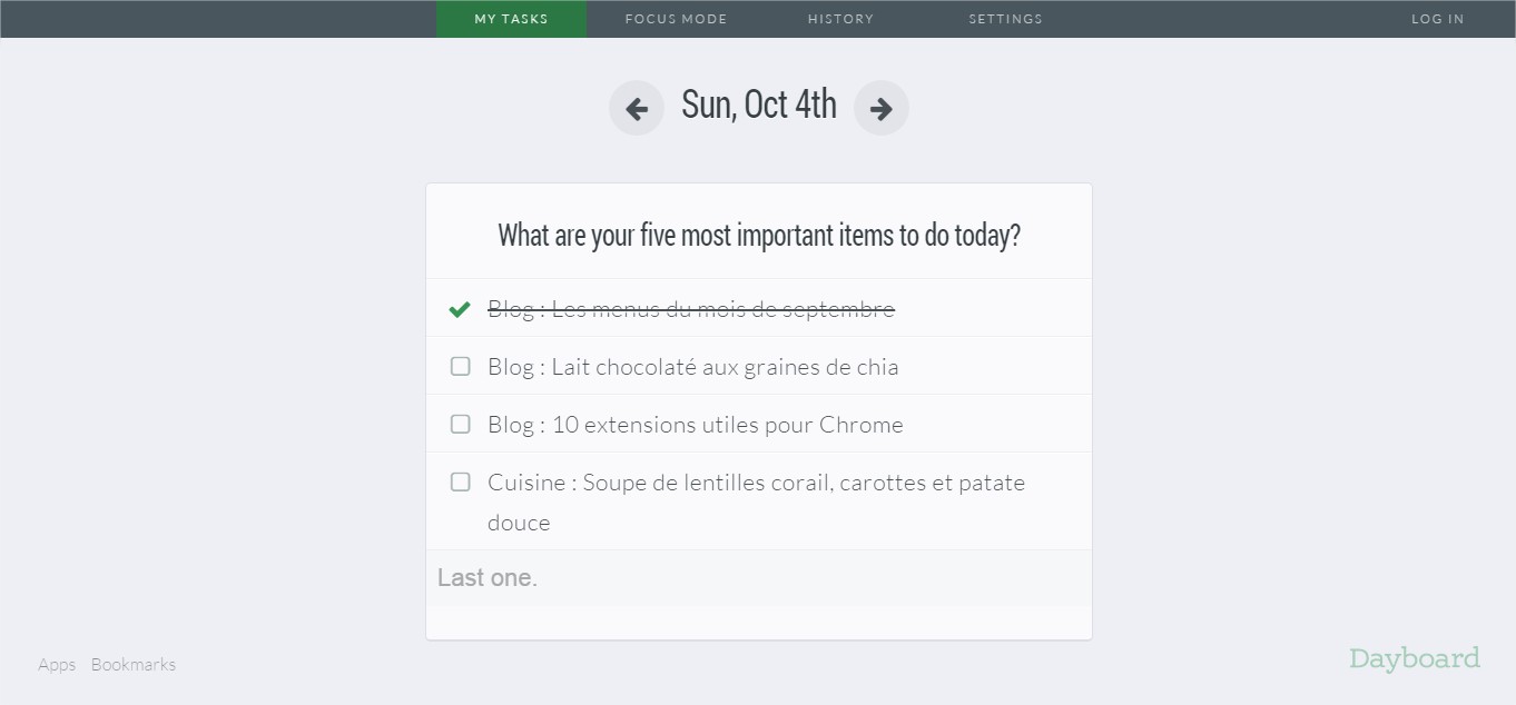 Cette extension vous permet d’avoir toujours sous les yeux les 5 tâches prioritaires de votre journée.