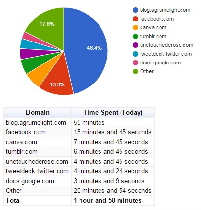 Aujourd’hui, j’ai surtout passé du temps sur mon blog ! Mais facebook est en 2ème position…