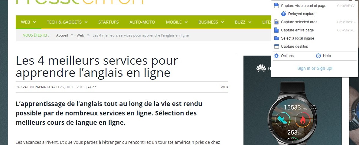J’aime cet outil qui donne plusieurs options pour capturer l’image d’un site internet : capturer ce qui est visible, capturer une zone de l’écran, capturer la page entière (l’option que je trouve la plus utile)…