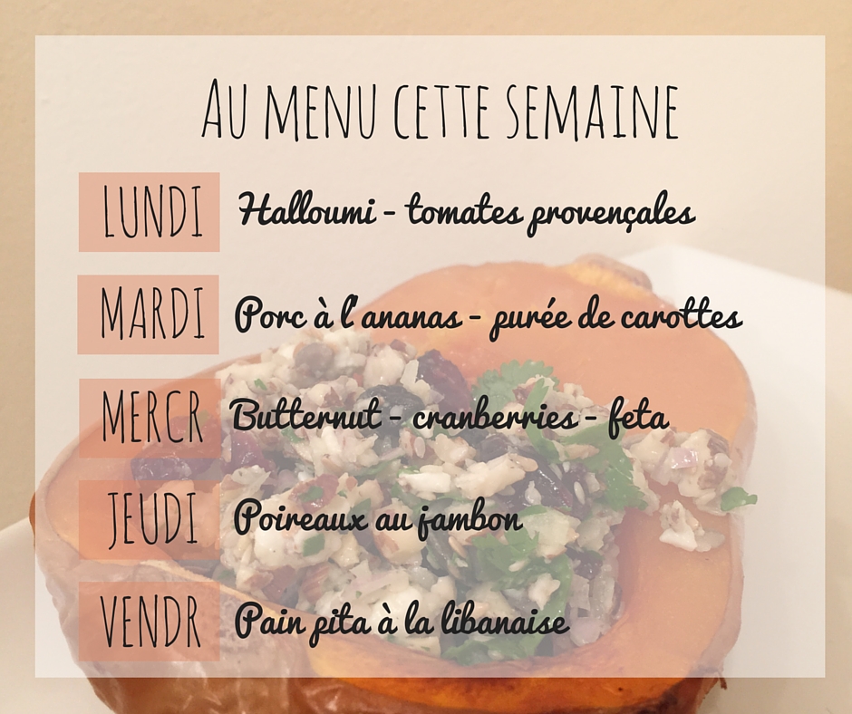 Déjà le mois de novembre ! Pour l’instant il fait encore très beau, et pas encore si froid, alors j’en profite pour faire de belles balades. Au menu cette semaine, encore pas mal de butternut et de l’halloumi (une découverte pour moi cette année).